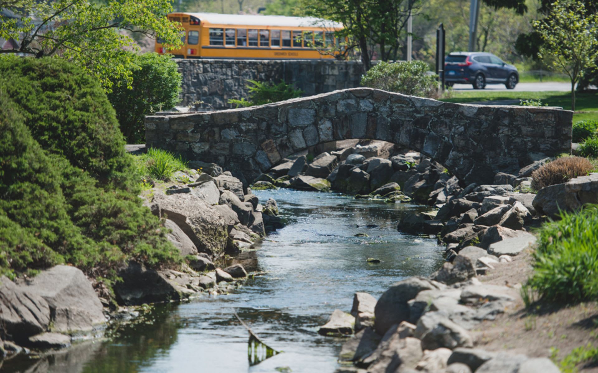 The post office, restaurants, playgrounds, the library—all are just steps apart in the heart of this four-and-a-half-square-mile town.