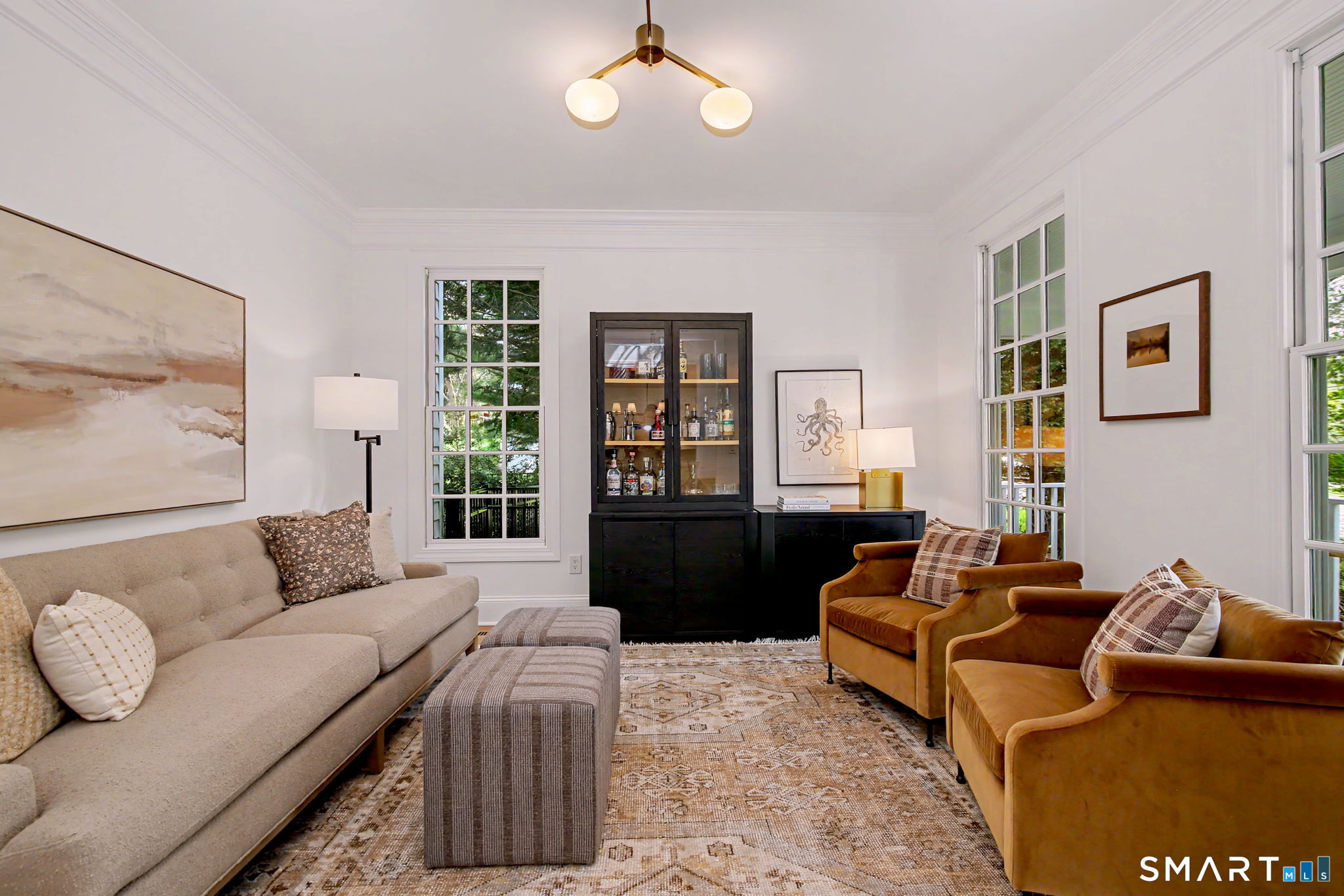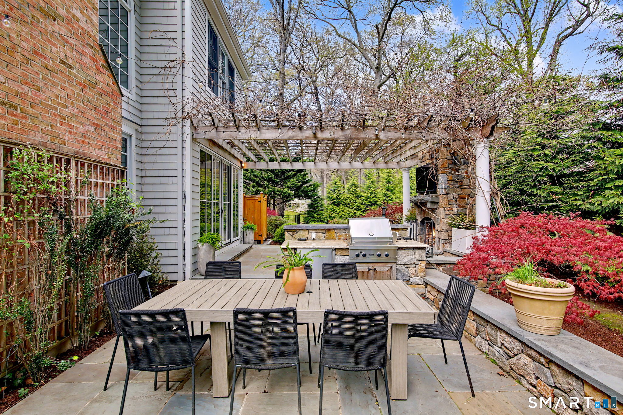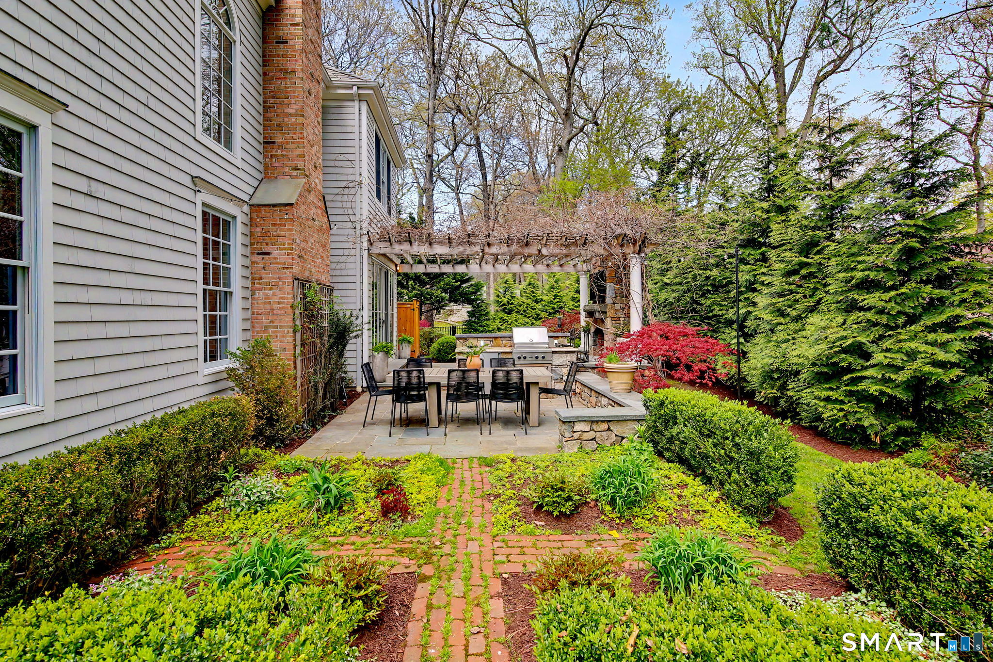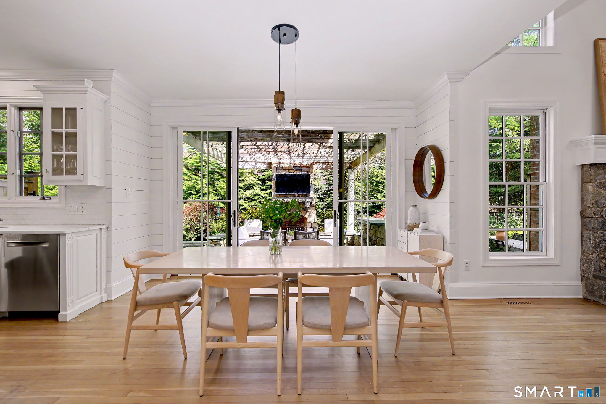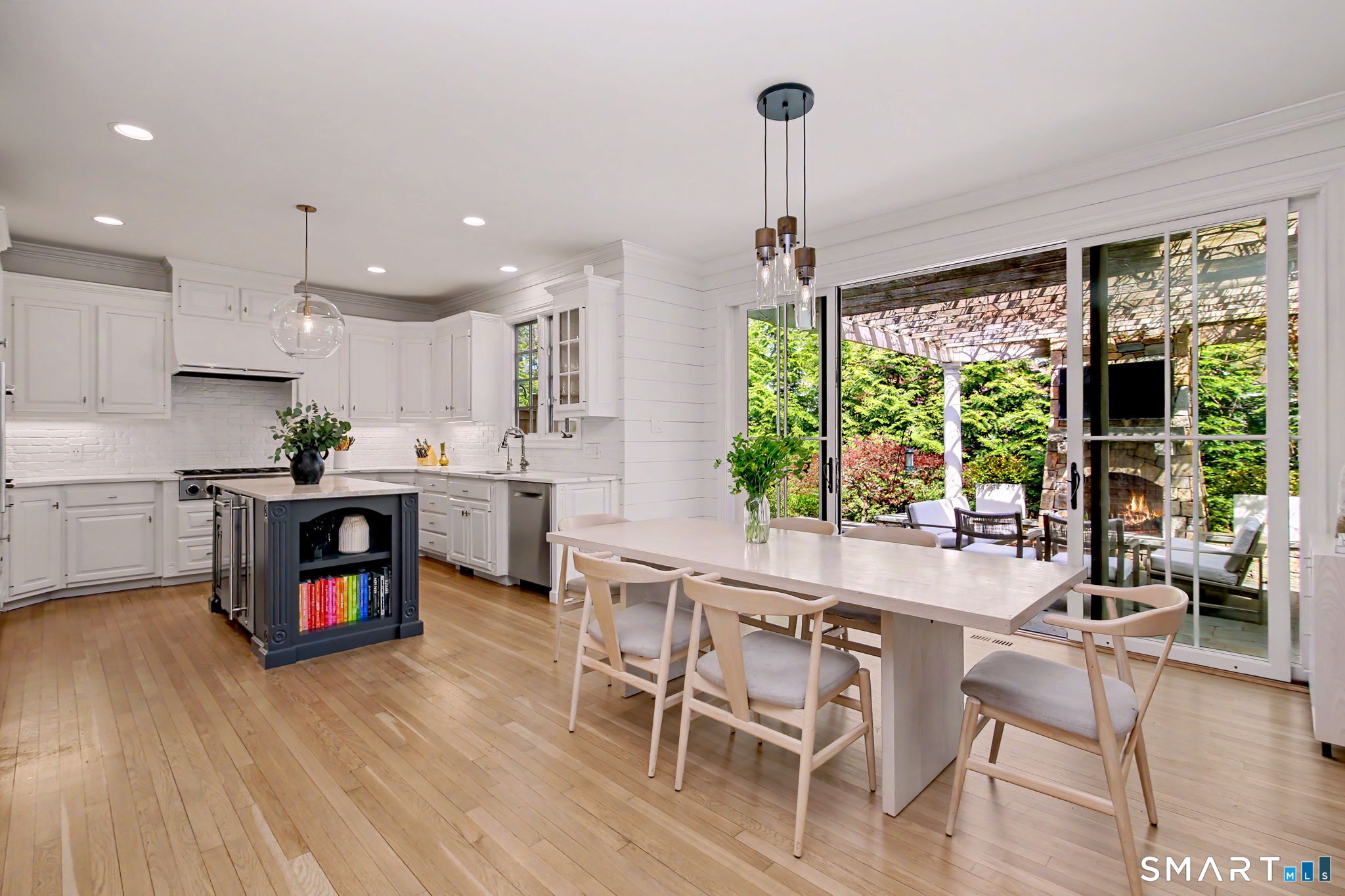 Set on a quiet street in the seaside village of Rowayton, 12 Ledge Road captures the essence of coastal living with an easy walk-to-town lifestyle. This 5-bedroom, 4.5-bath home offers over 4,600 square feet of beautifully designed living space, blending comfort and style throughout. An inviting oversized front porch leads into a striking two-story living room, where natural light and an open floor plan create an effortless flow. The dining room and spacious chef's kitchen are ideal for both everyday living and entertaining, while a first-floor flex bedroom or private office adds versatility. Outside, a thoughtfully designed patio features an outdoor kitchen, fireplace, and TV lounge, perfect for summer evenings and relaxed gatherings, along with an outdoor shower for the ultimate post-beach rinse. Upstairs, the serene primary suite is a true retreat with a fully renovated, spa-like bath and oversized walk-in closet. Three additional bedrooms include one en suite and two connected by a Jack and Jill bath. The finished lower level expands the living space with a full bath, gym area, and wine cellar. Enjoy Rowayton's coveted lifestyle with nearby beaches, parks, and a vibrant, close-knit coastal community just moments from your door.