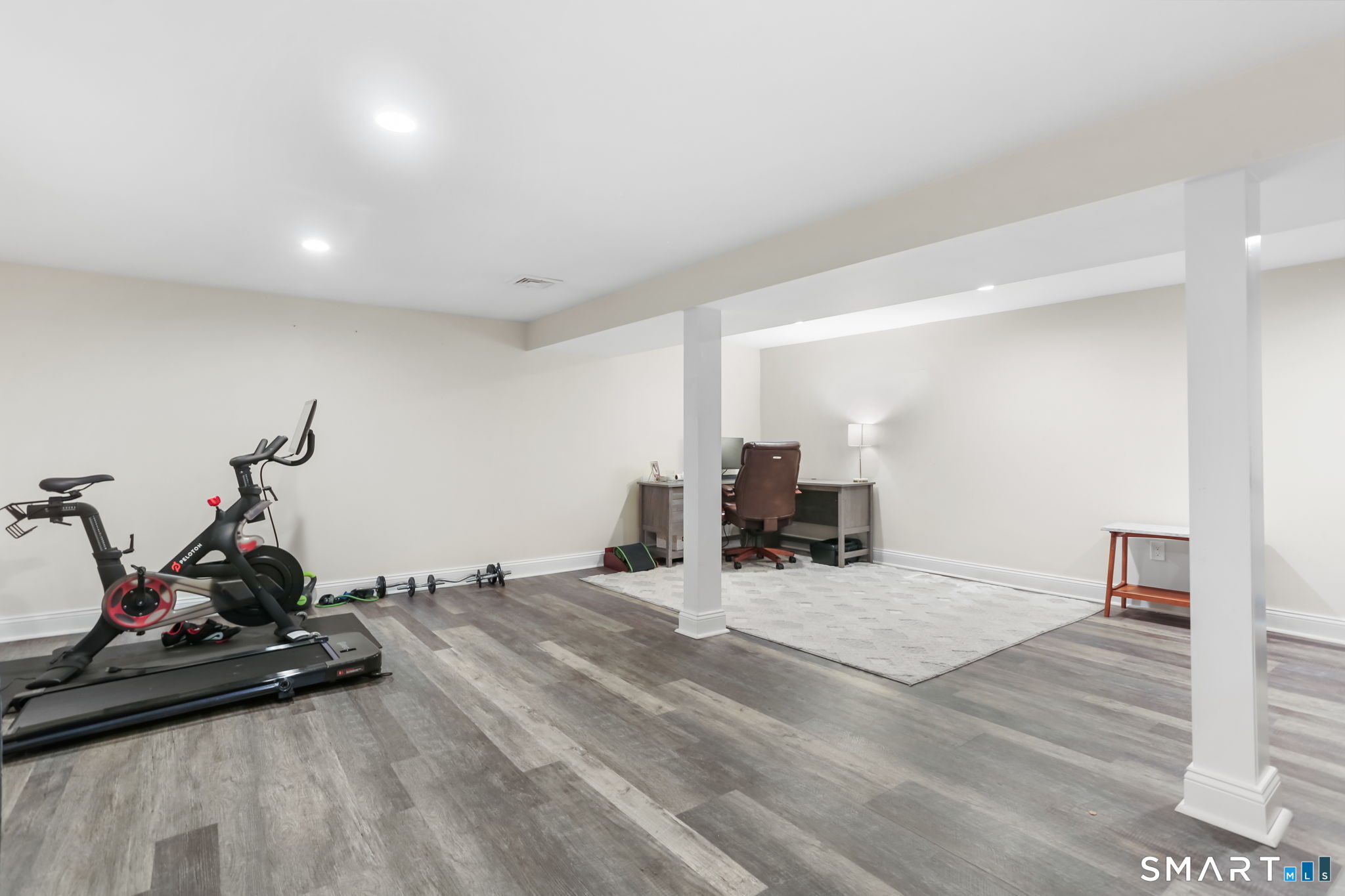 Located at 281 Wood House Rd in Fairfield, CT, this beautifully updated home seamlessly blends modern comfort with timeless charm. Offering four spacious bedrooms, including a primary en-suite with a walk-in closet, it provides plenty of flexibility for family, guests, or a home office. The bright and inviting living spaces include a sunlit living room and a cozy family room conveniently situated off the kitchen. The kitchen is a chef's delight, featuring new hardwood floors, a tasteful new backsplash, updated island countertops, and brand-new appliances-refrigerator, dishwasher, washer, and dryer. Hosting is effortless with a generously sized dining room adjacent to the kitchen. The finished basement offers incredible versatility-ideal as a home office, gym, playroom, or extra storage. Step outside to a large, newly fenced backyard, perfect for barbecues, playtime, or relaxing evenings. A two-car garage completes this exceptional property. Situated in a highly desirable Fairfield neighborhood on a quiet dead-end road, this home delivers the perfect blend of style, comfort, and functionality-ready to meet your every need!