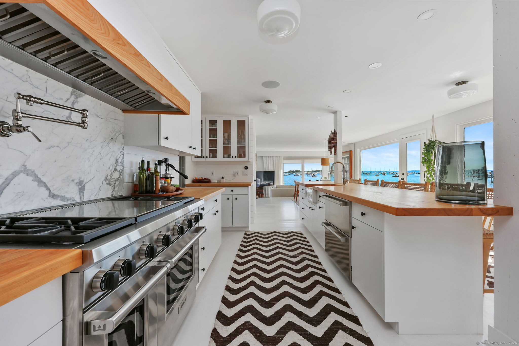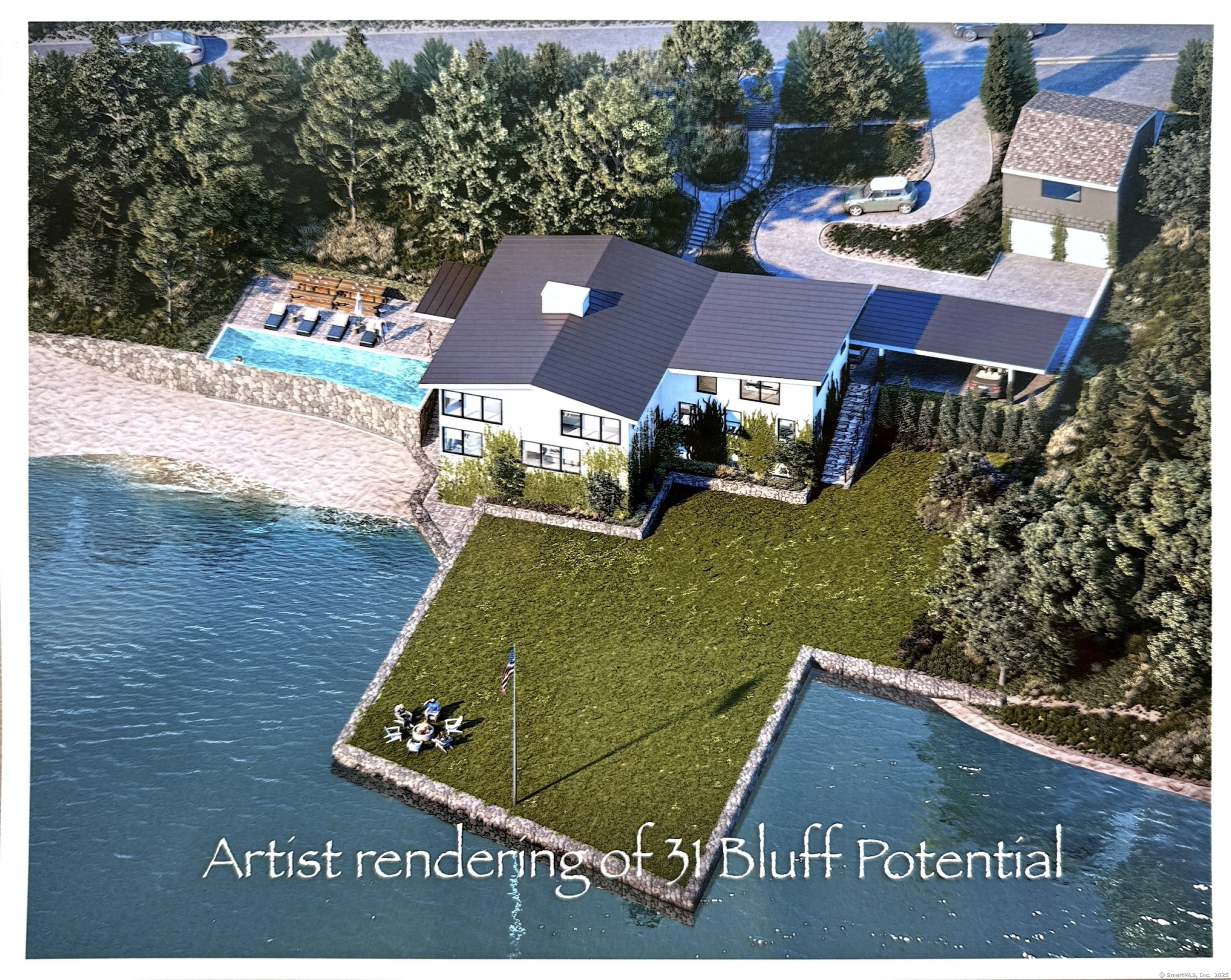 Discover a coastal haven at 31 Bluff Ave in Rowayton, CT. This expansive 3,453 sf home seamlessly blends luxury with serene waterfront living, offering an unparalleled retreat adorned with panoramic views. Featuring 4 spacious bedrooms and 3.5 baths, the residence invites you into a realm of comfort with the primary suite boasting a new walk-in closet. At the heart of the home, an expansive living area showcases floor-to-ceiling windows that frame breathtaking water views, capturing the essence of indoor-outdoor living. Culinary enthusiasts will be drawn to the modern kitchen, thoughtfully designed with high-end Sub-Zero and Wolf appliances, complemented by ash wood countertops. Outside, your private sanctuary awaits, featuring an 80-foot beachfront that offers direct access to tranquil waters-ideal for swimming and kayaking. The property includes a convenient two-car garage, providing ample storage. Experience the luxury of a private beach transforming everyday life into a perpetual getaway. The lower-level gym includes a full bath and water views, enhancing the seamless living experience. Recent updates include a new metal roof, hurricane windows, and an outdoor kitchen. A massive landscaping project introduced 300 green giant trees and sea grass, meticulously placed to enhance the yard's natural beauty. This unique waterfront property presents an opportunity to reside in a home that serves as a tranquil retreat while still walking distance to town and beaches.